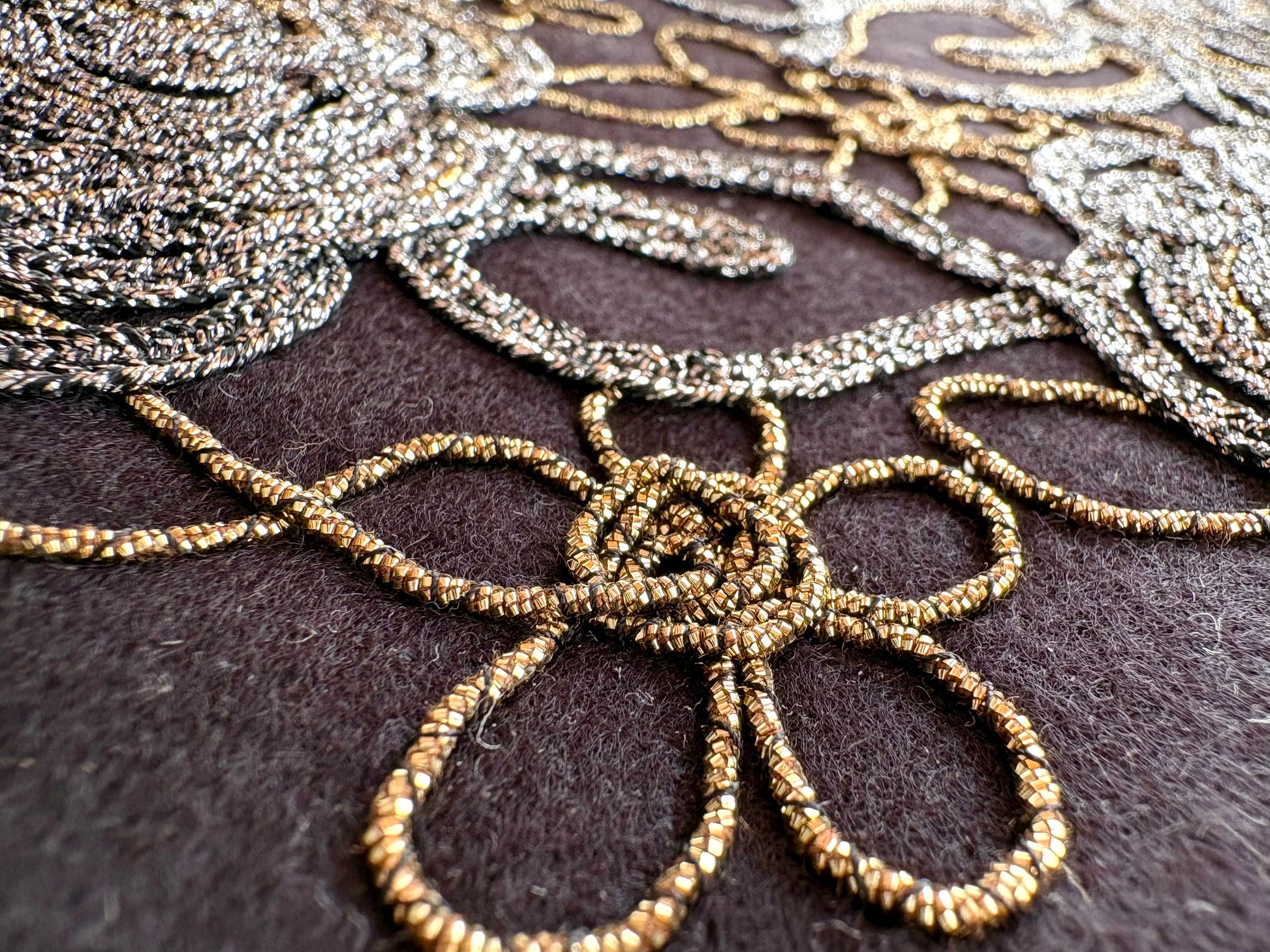 Thick glitter thread that seems to gather all sorts of sparkle and shine.
