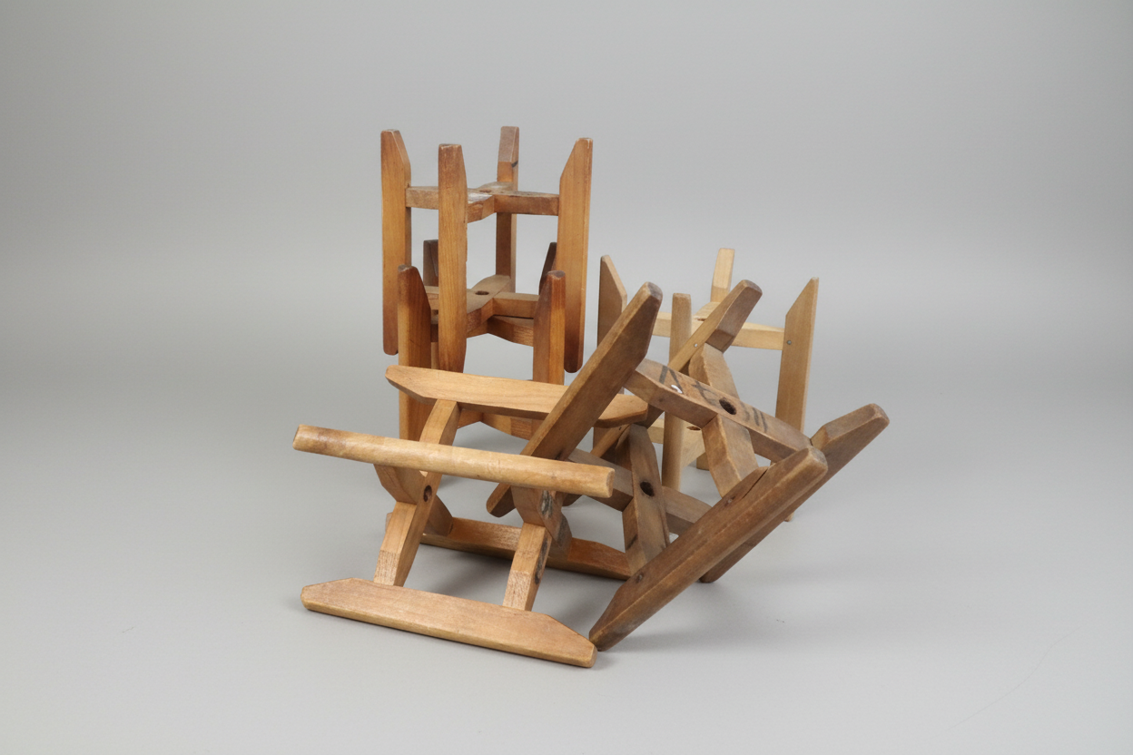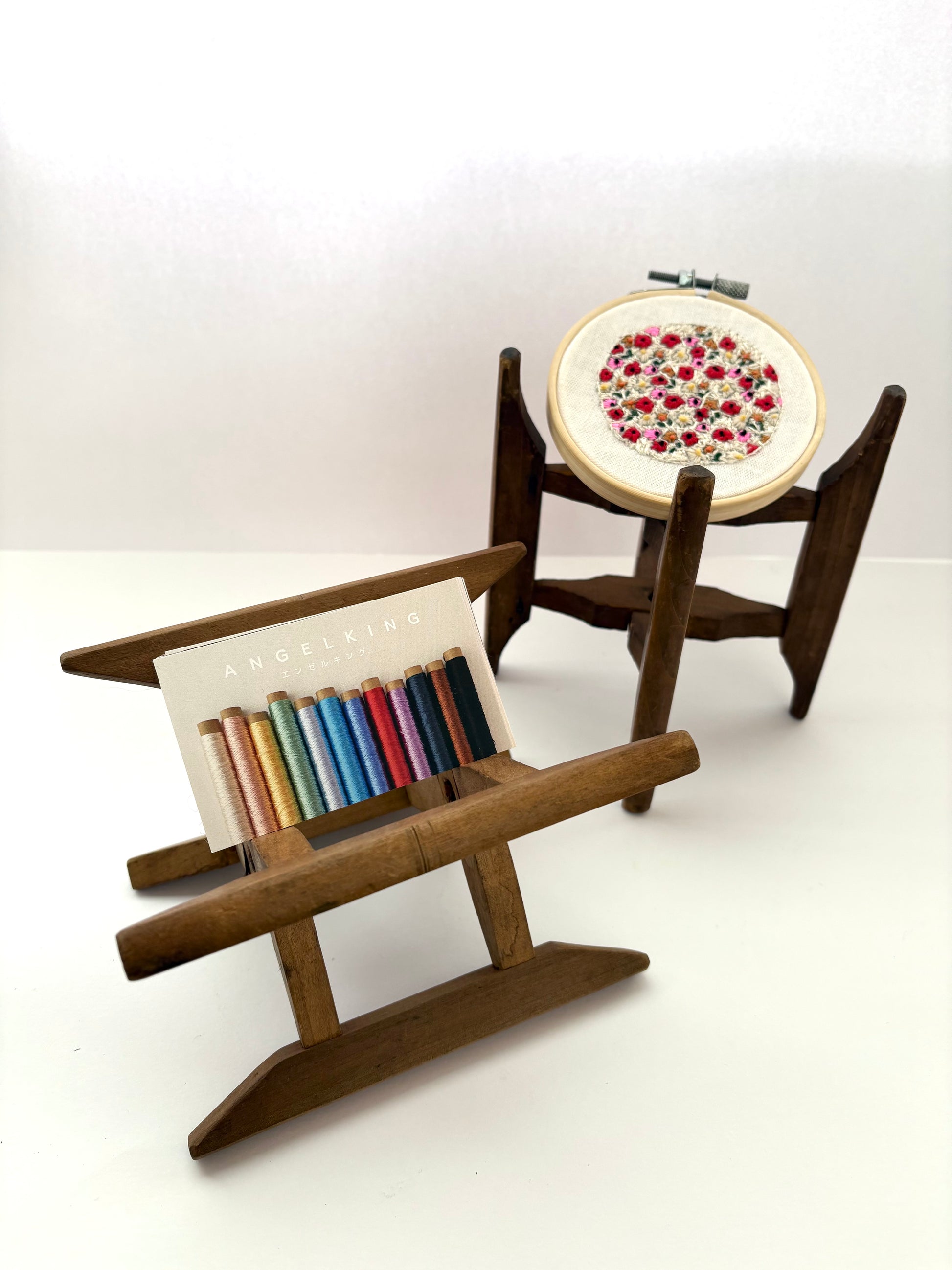 以前、糸の巻き加工に使用していた木製の糸枠です。
